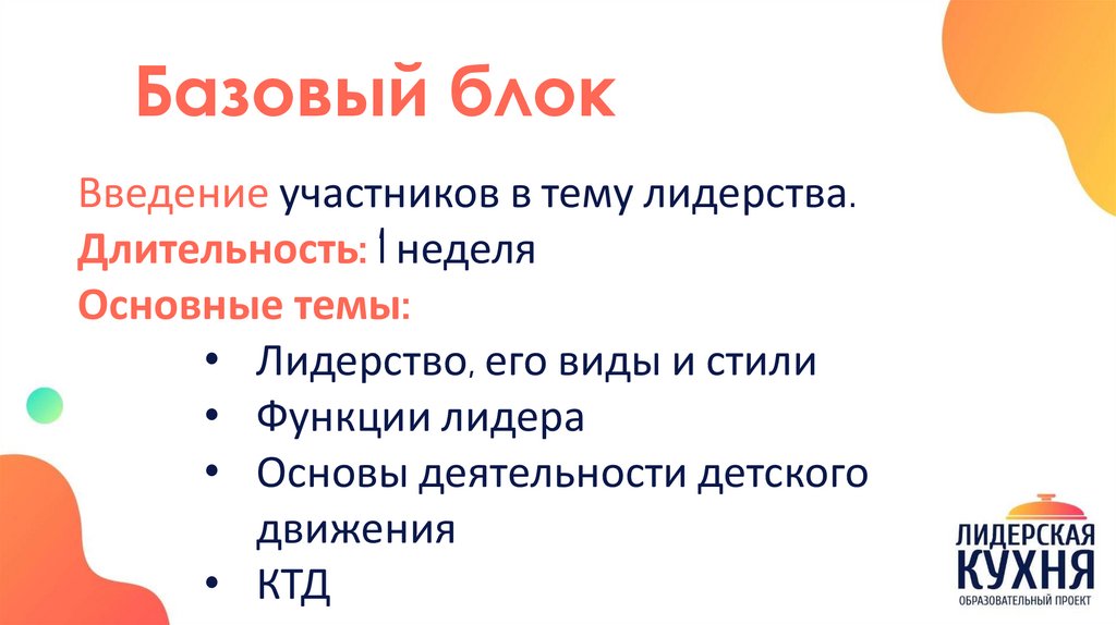Базовый блокВведение участников в тему лидерства.