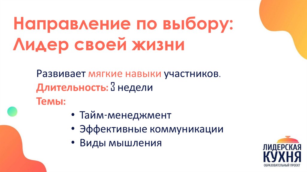 Направление по выбору:Лидер своей жизни