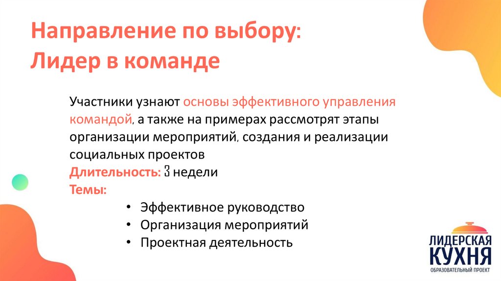 Направление по выбору:Лидер в команде