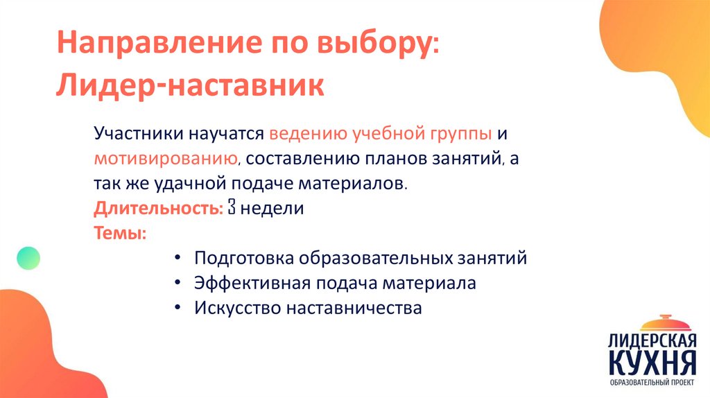 Направление по выбору:Лидер-наставник
