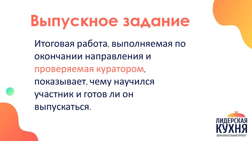 Выпускное заданиеИтоговая работа, выполняемая по