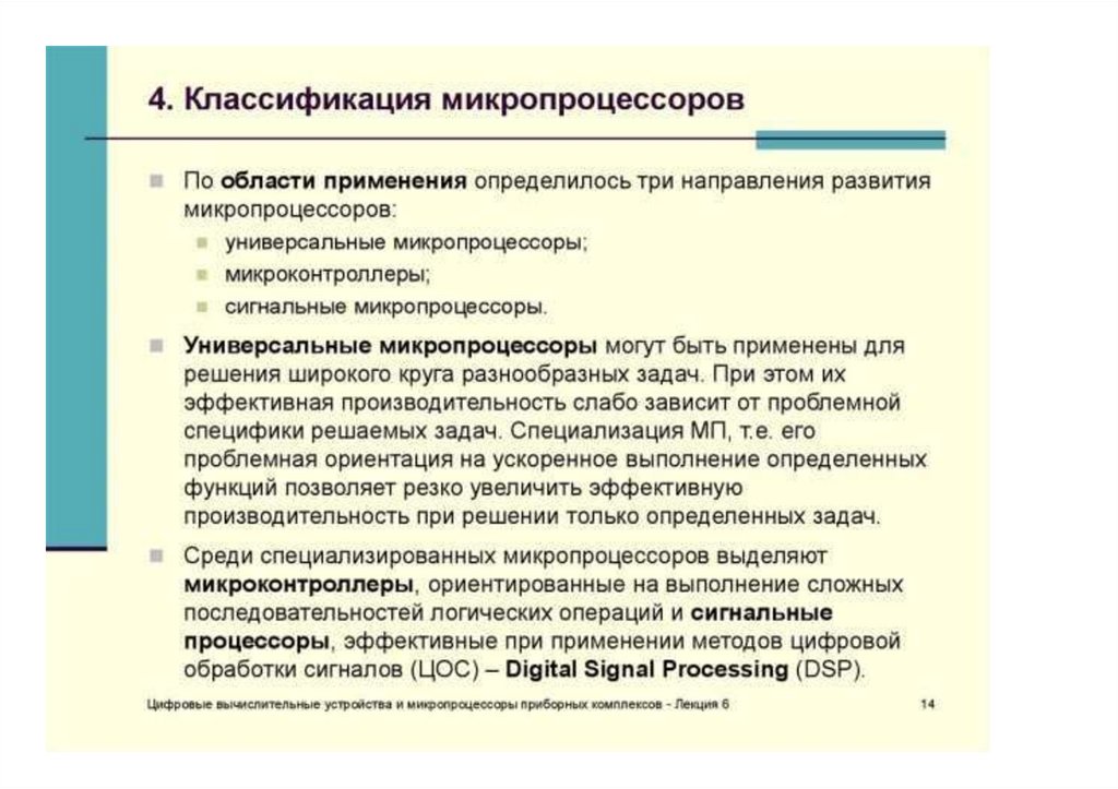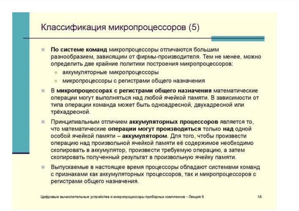Основные типы микропроцессоров