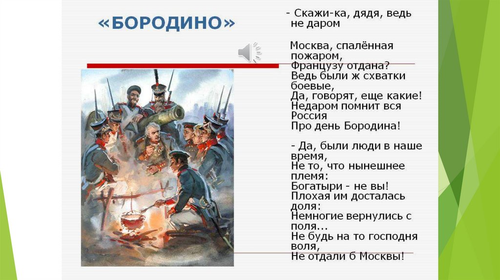 М.Ю.Лермонтов «Бородино». Историческая основа стихотворения