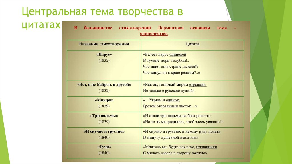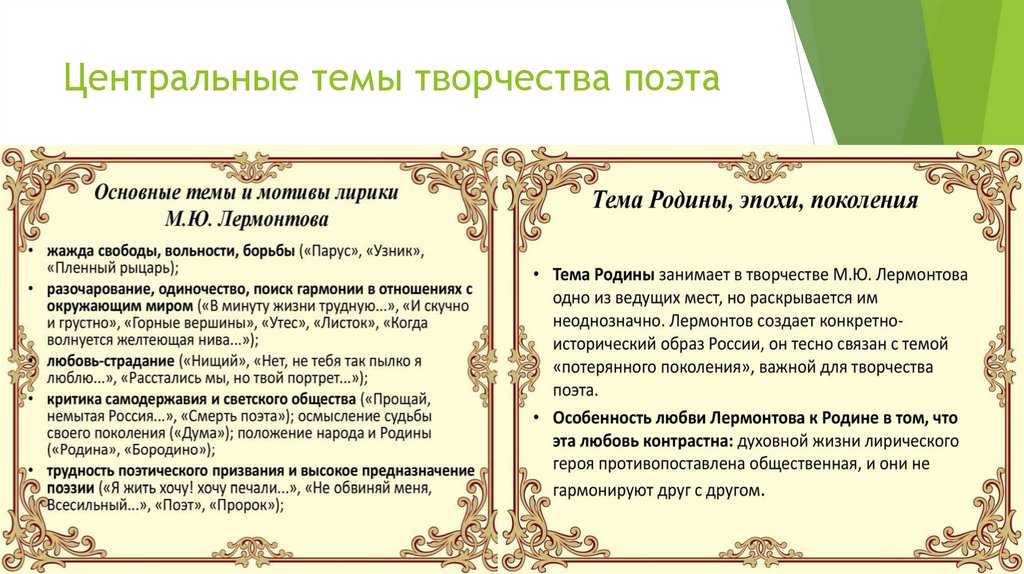 М.Ю.Лермонтов. Лирика-романтизм («Бородино»- реализм)