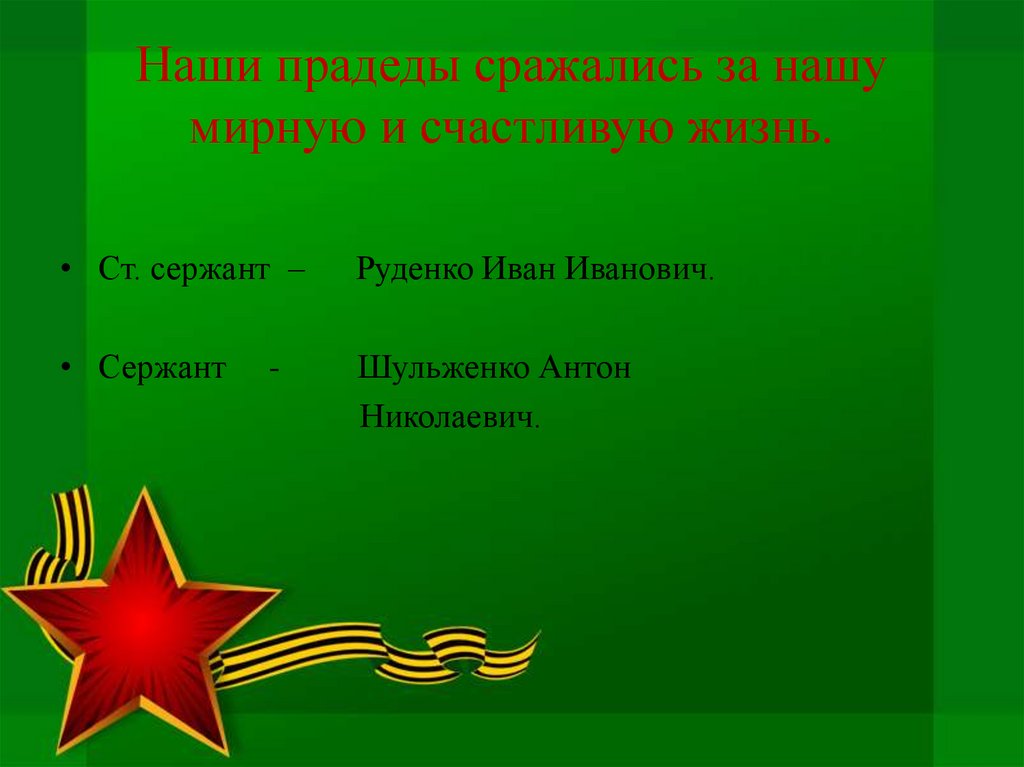 Наши прадеды сражались за нашумирную и счастливую жизнь.