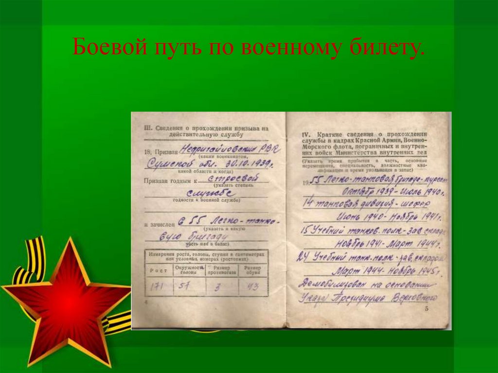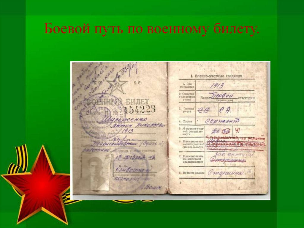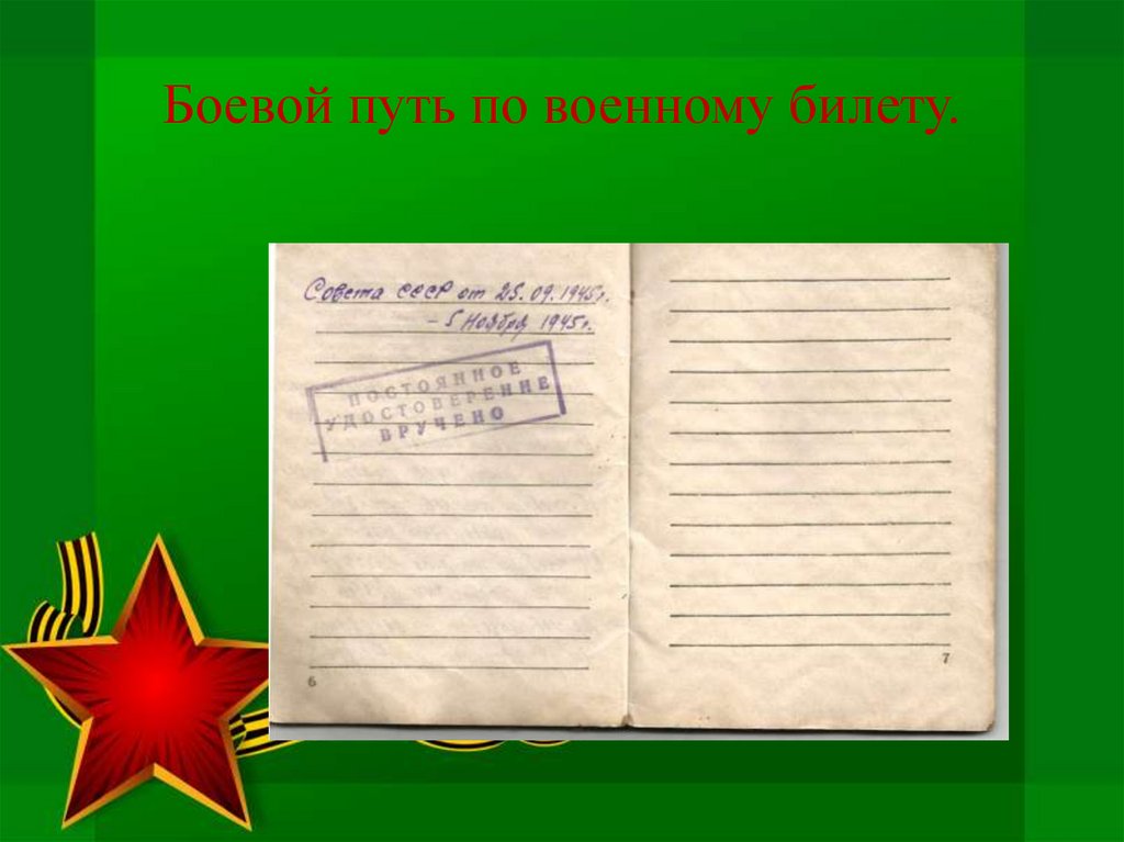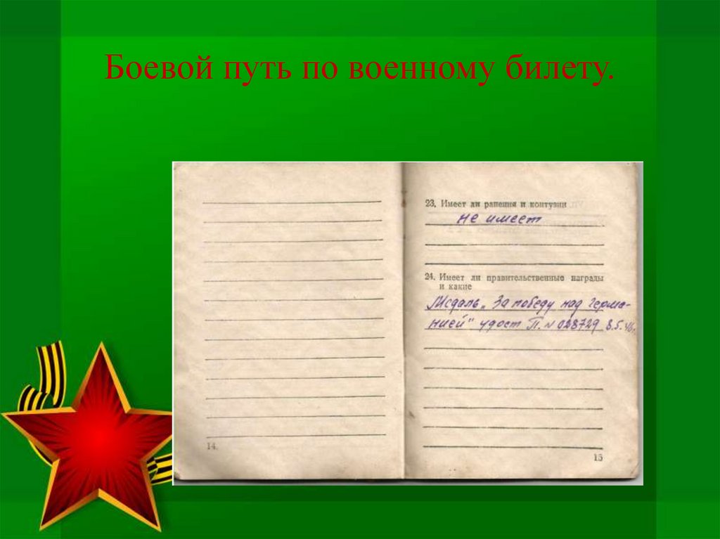 Боевой путь по военному билету.13.