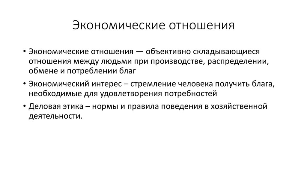Экономические отношения• Экономические отношения — объективно складывающиеся