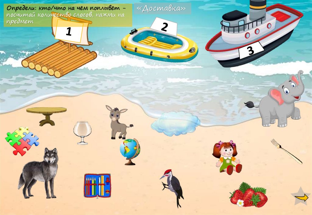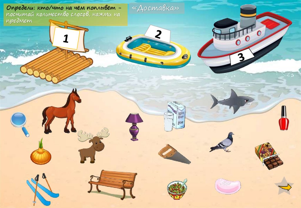 Определи: кто/что на чём поплывёт посчитай количество слогов, нажми на