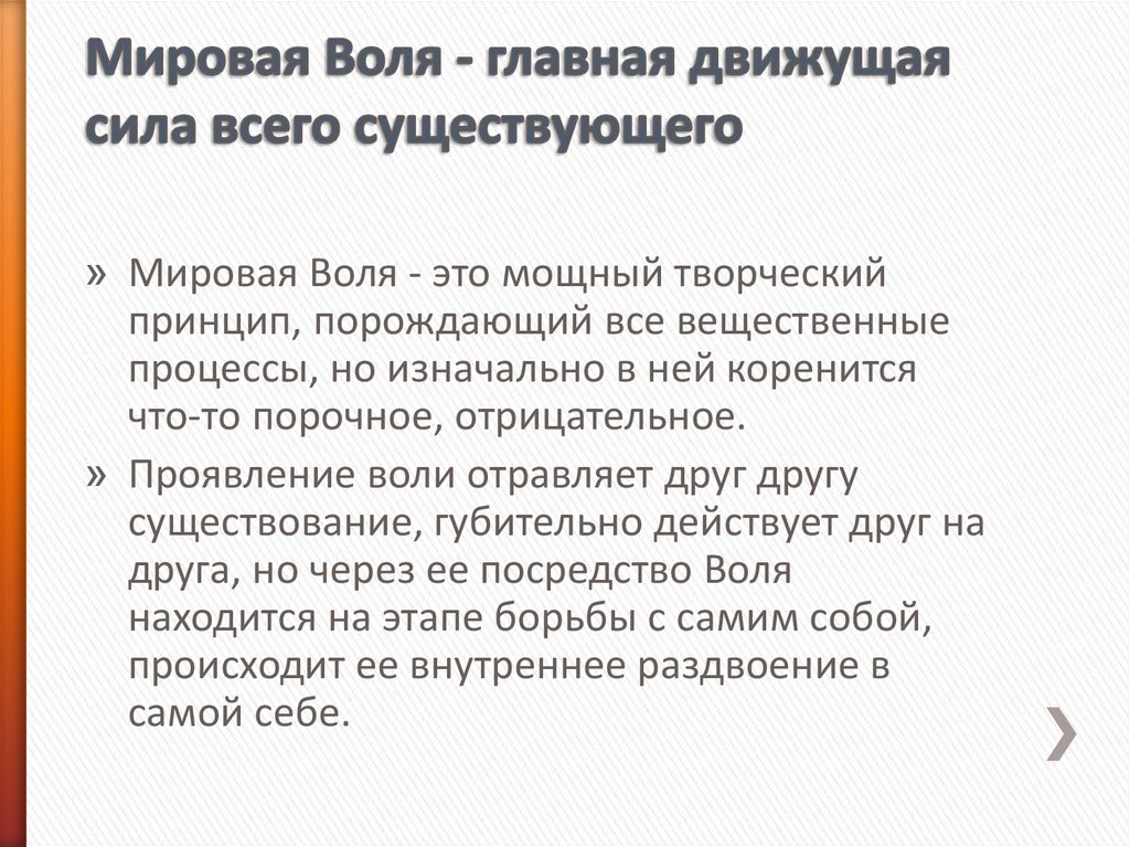 » Мировая Воля - это мощный творческийпринцип, порождающий все вещественные