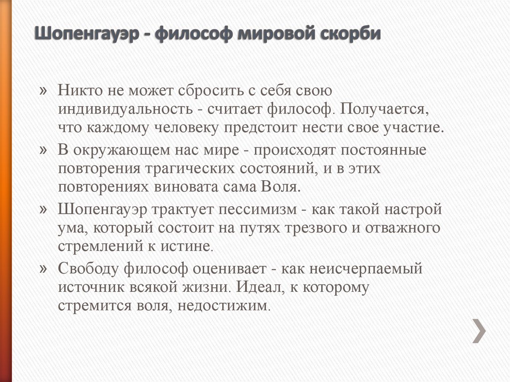 » Шопенгауэр трактует пессимизм - как такой настрой