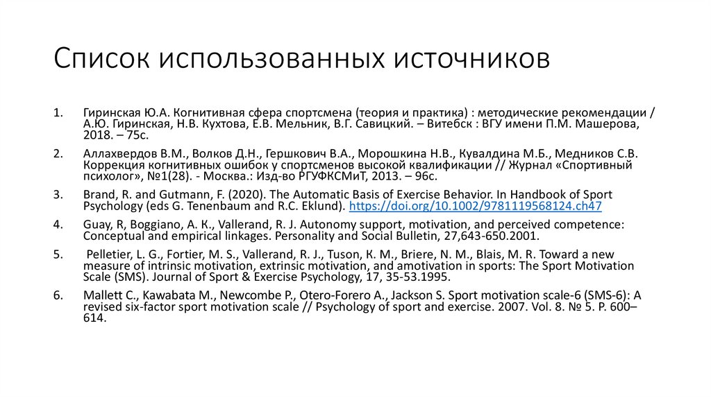 revised six-factor sport motivation scale // Psychology of sport and exercise. 2007. Vol. 8. № 5. P. 600–
