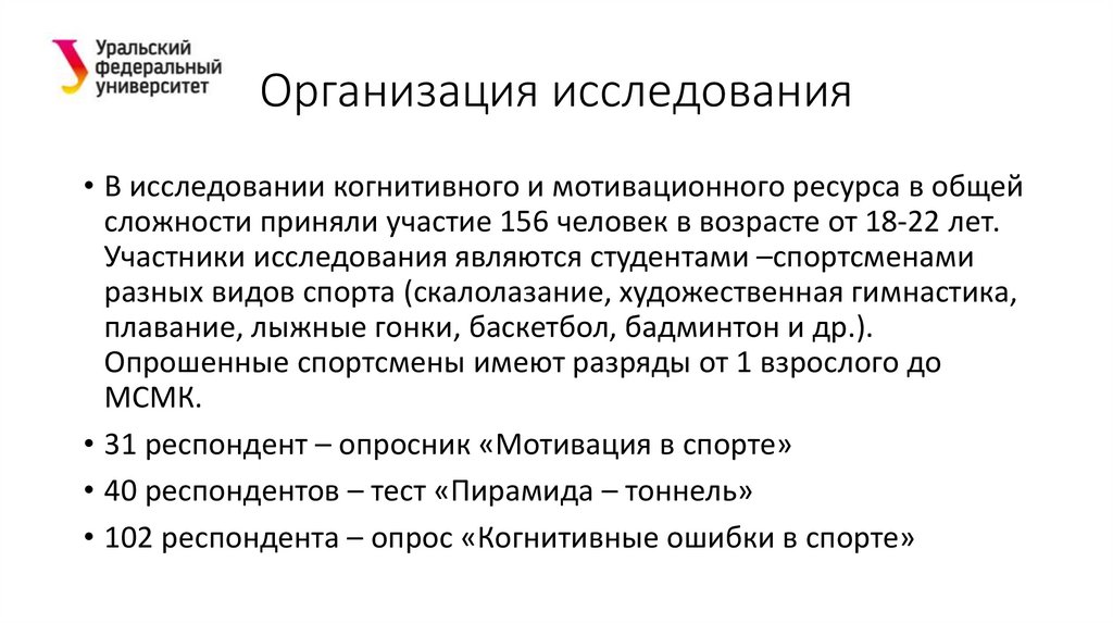 Организация исследования• В исследовании когнитивного и мотивационного ресурса в общей