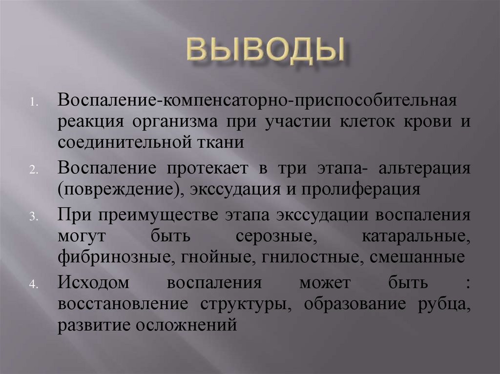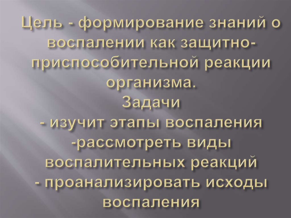 Общие закономерности развитие воспаленияТеоретическое занятие по дисциплине “ Основы патологии “