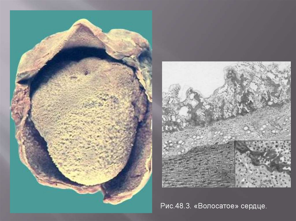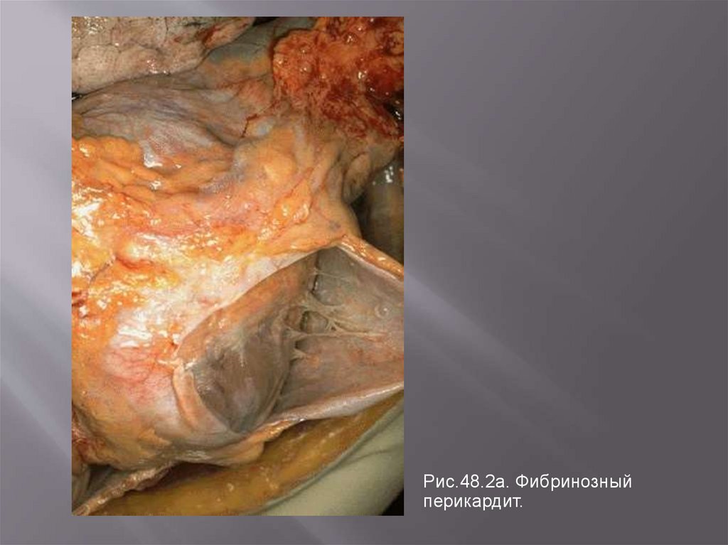 Рис.48.4. Дифтеритический колит. На поверхности отечной слизистойоболочки налет фибрина, больше справа.