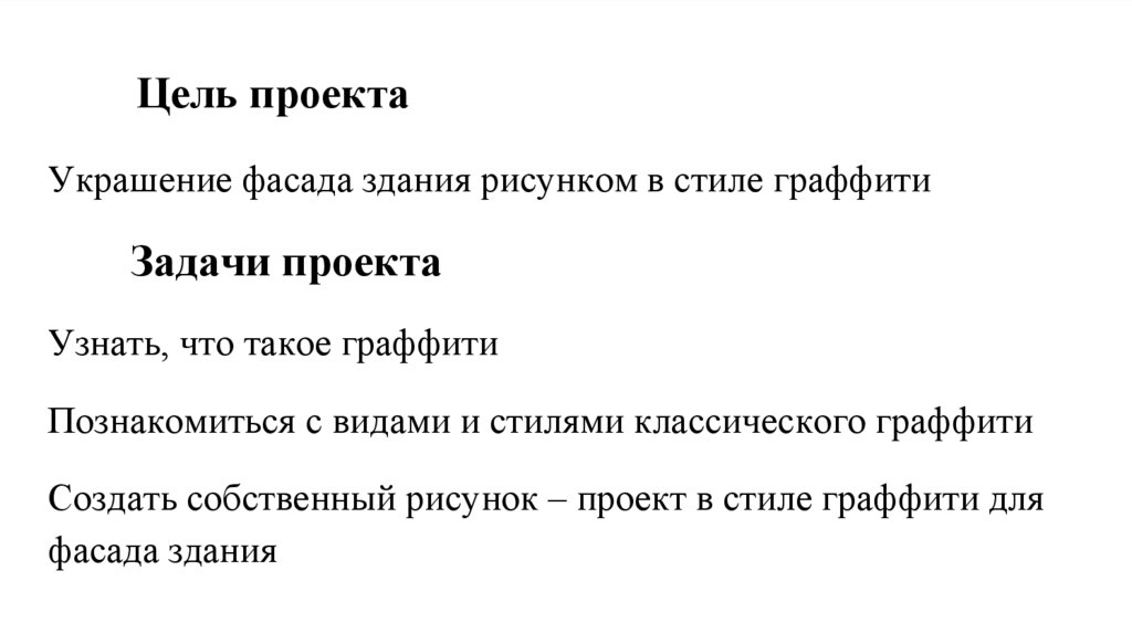 Цель проектаУкрашение фасада здания рисунком в стиле граффити