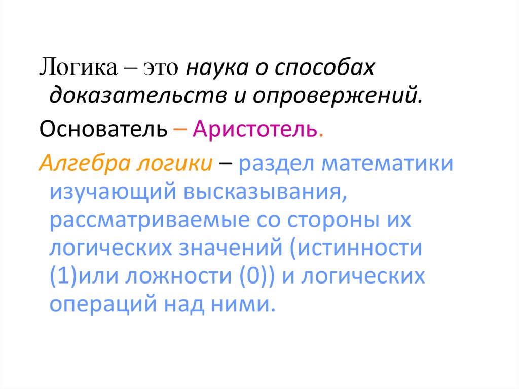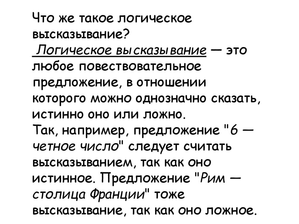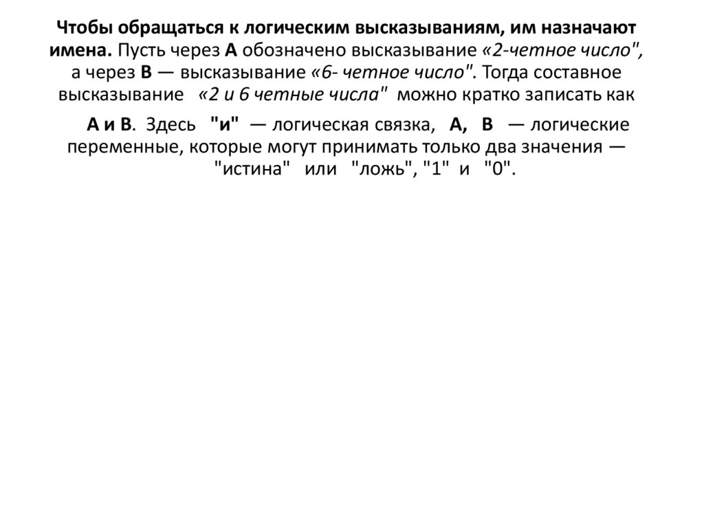 Чтобы обращаться к логическим высказываниям, им назначаютимена. Пусть через А обозначено высказывание «2-четное число",