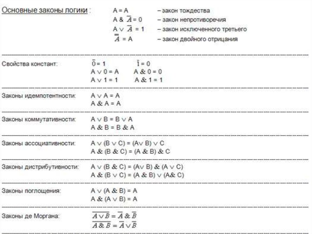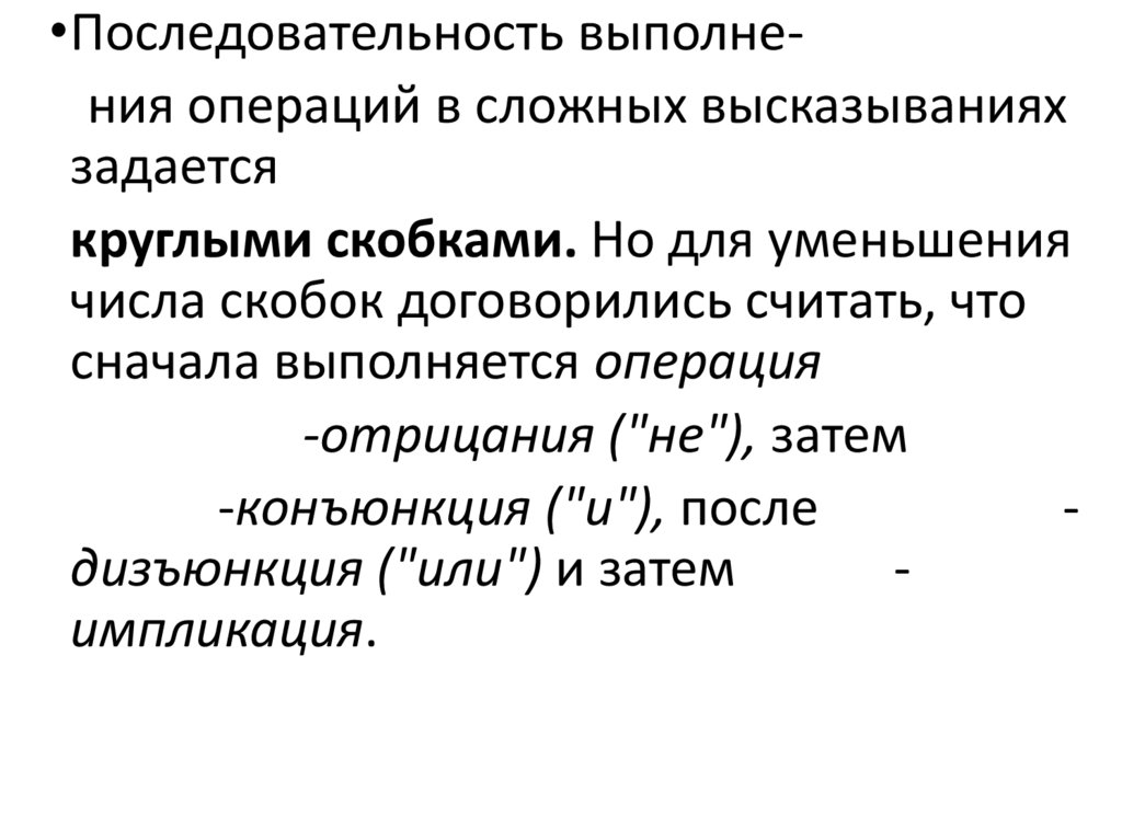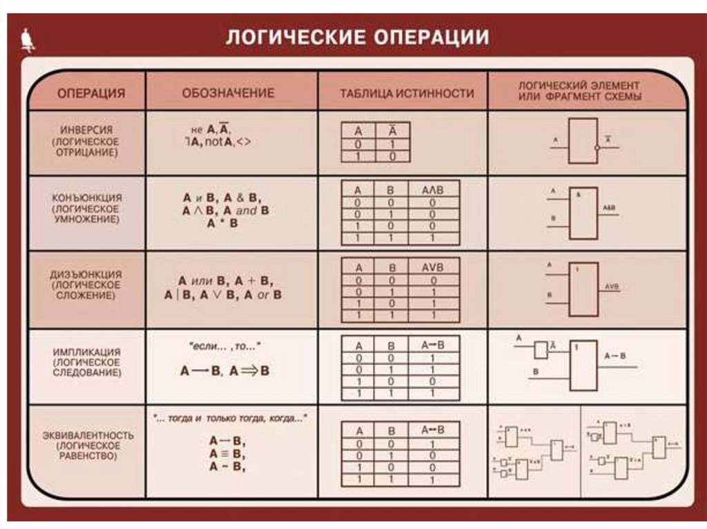 конъюнкция, дизъюнкция,отрицание, импликация,