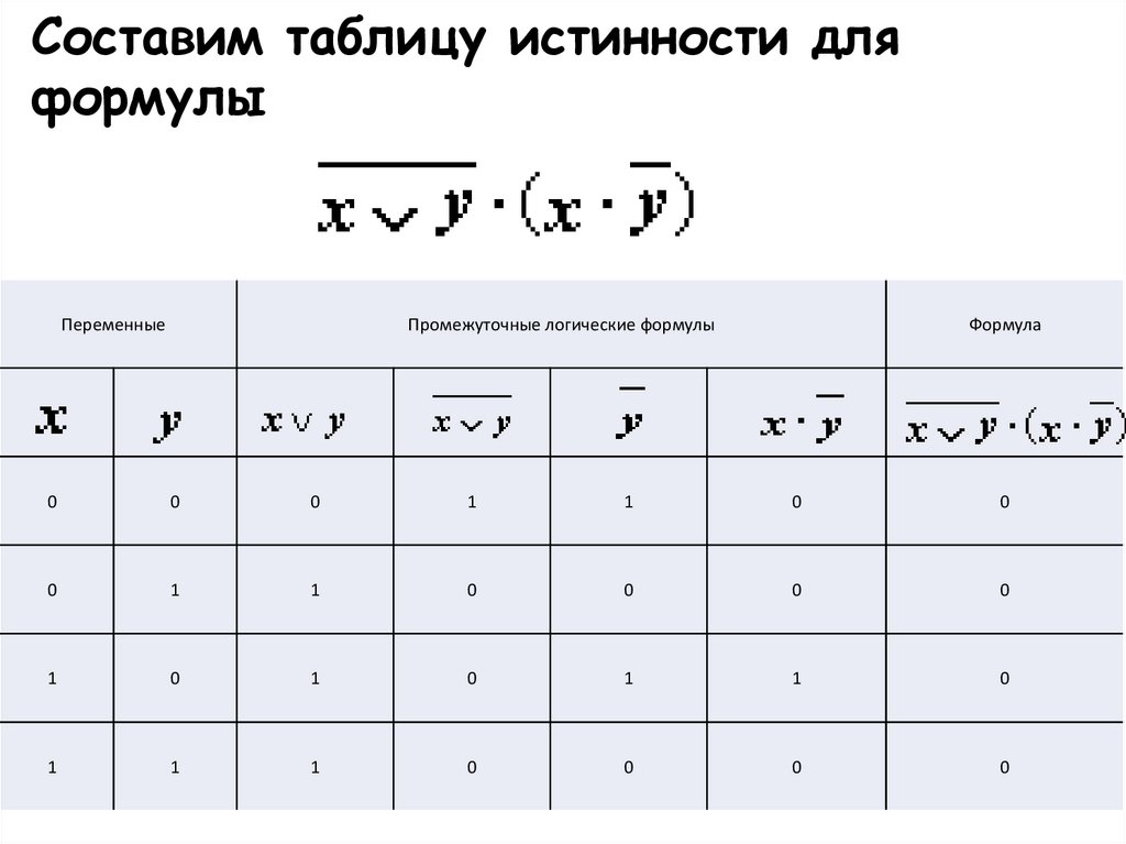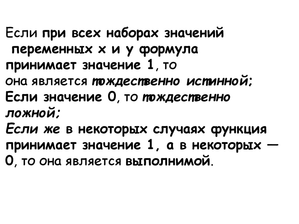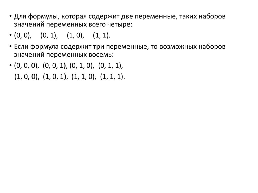 • Для формулы, которая содержит две переменные, таких наборовзначений переменных всего четыре: