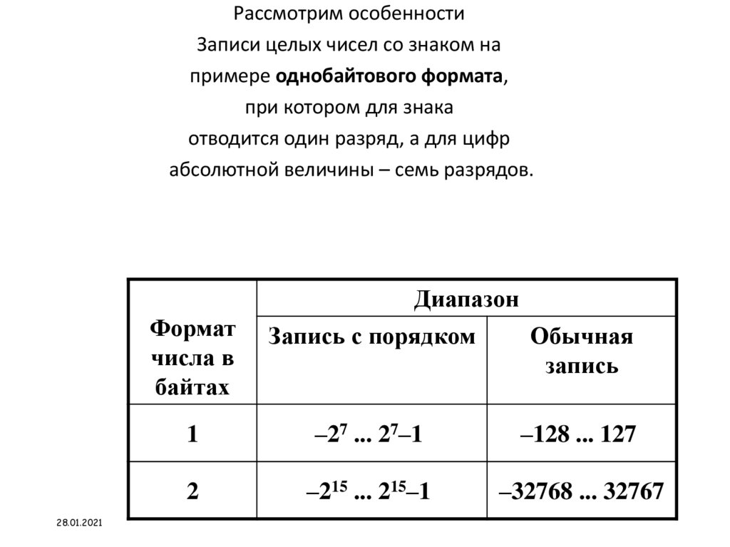 Рассмотрим особенностиЗаписи целых чисел со знаком на