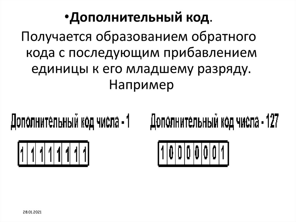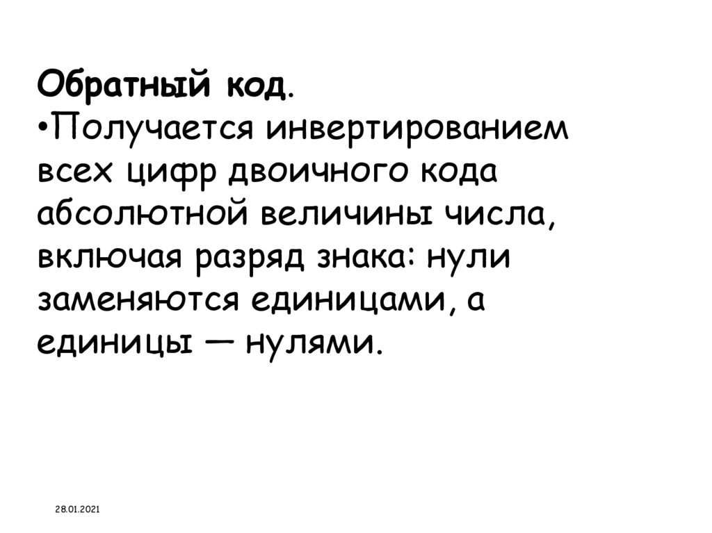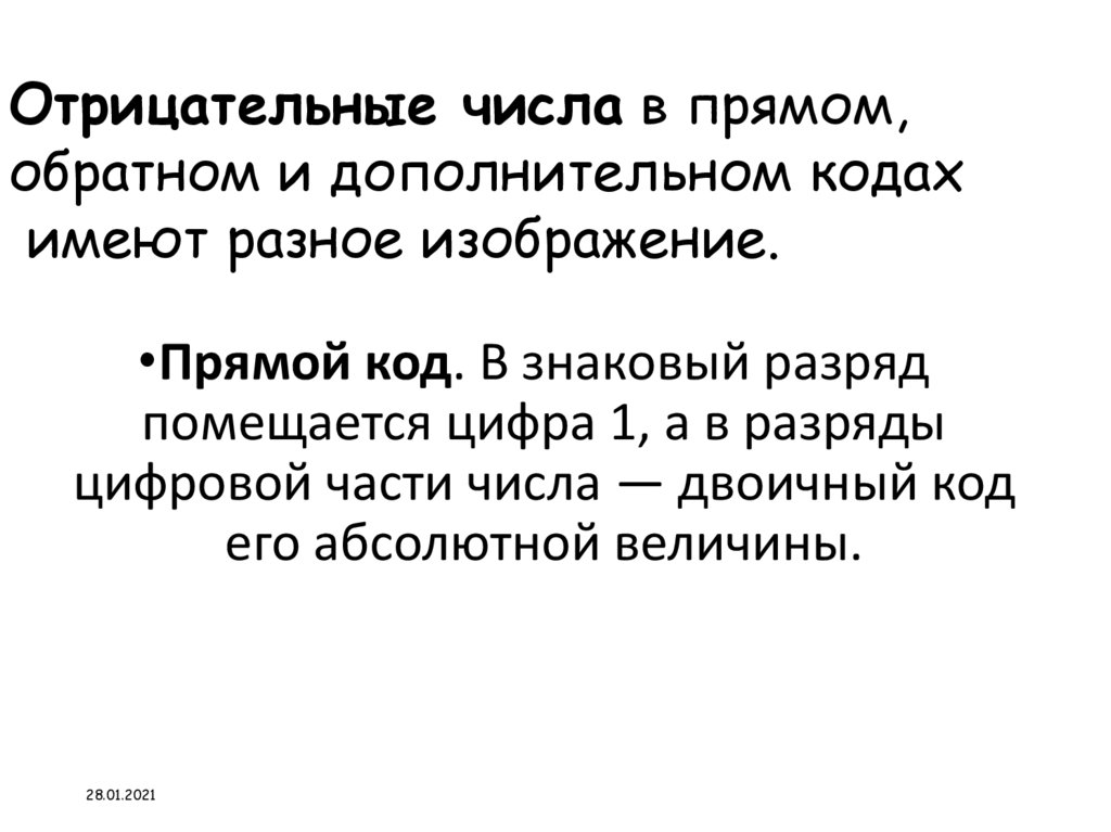 Отрицательные числа в прямом,обратном и дополнительном кодах
