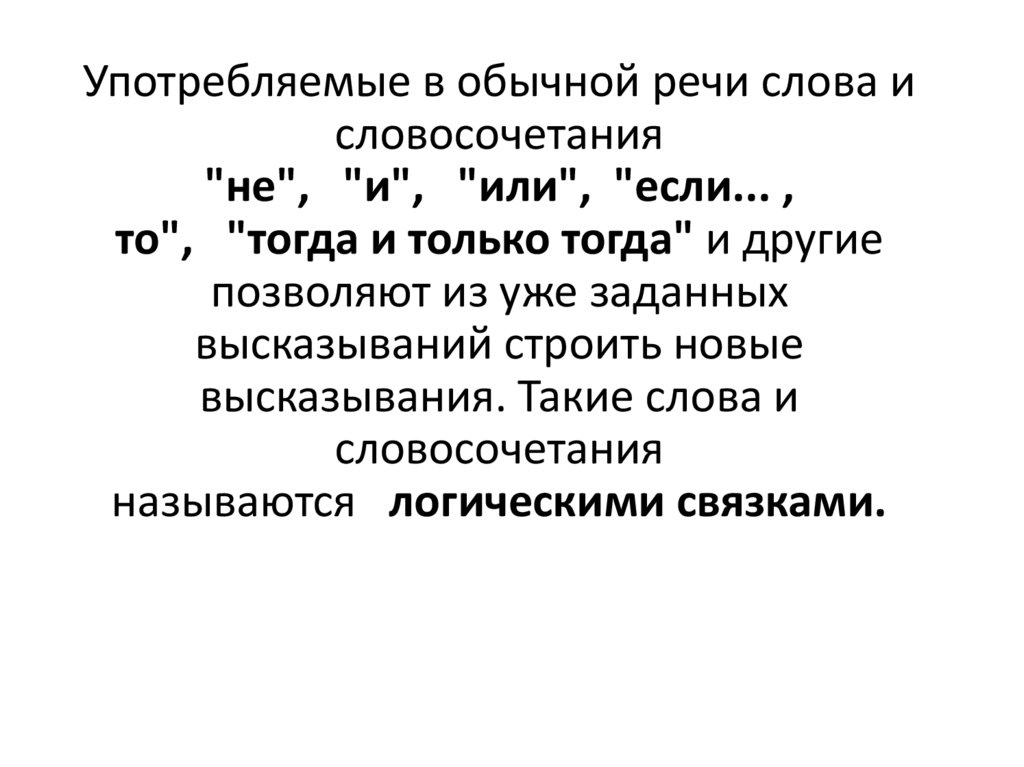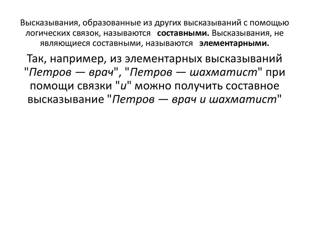 Bысказывания, образованные из других высказываний с помощьюлогических связок, называются составными. Высказывания, не