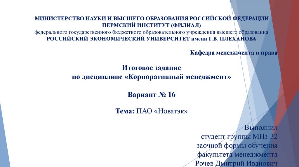 Тема: ПАО «Новатэк»
