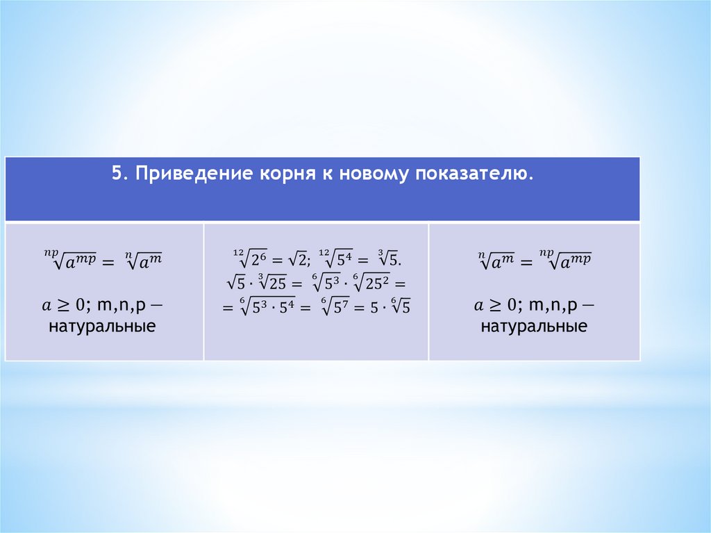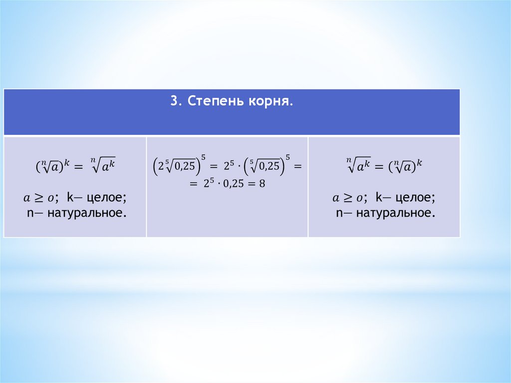 * Показателем корня может быть любое