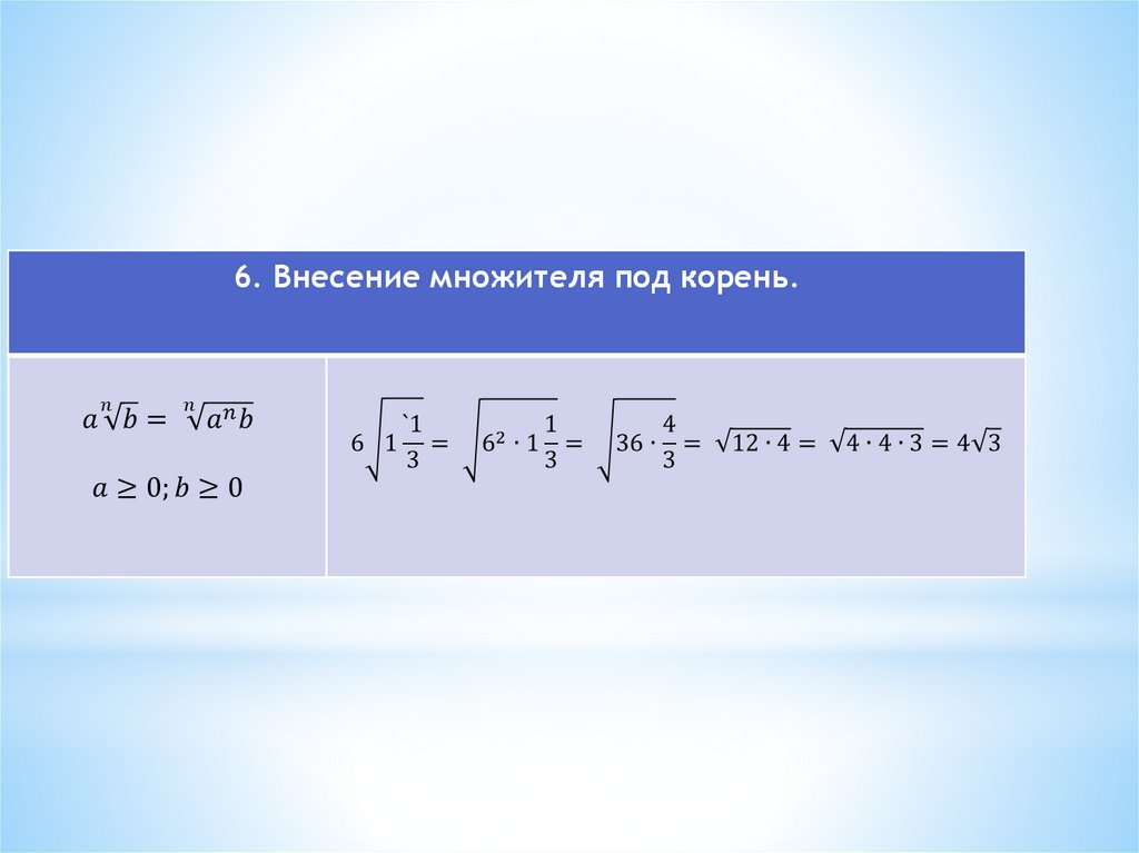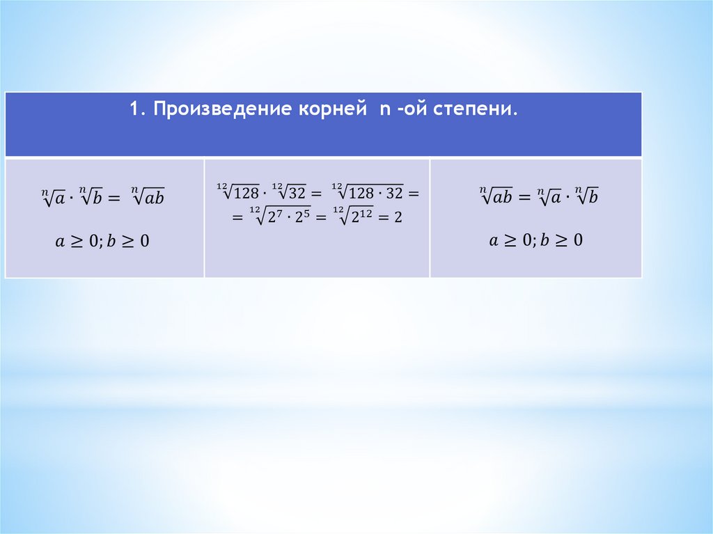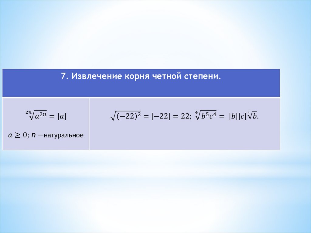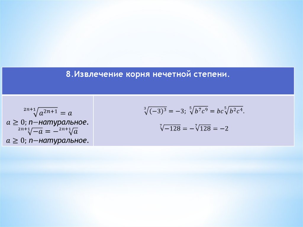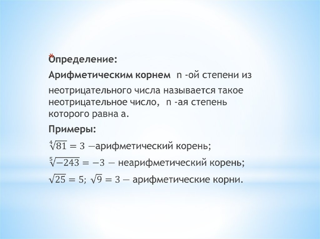 * Показатели корней вида n = 2k+1 используютдля обозначения любых корней.