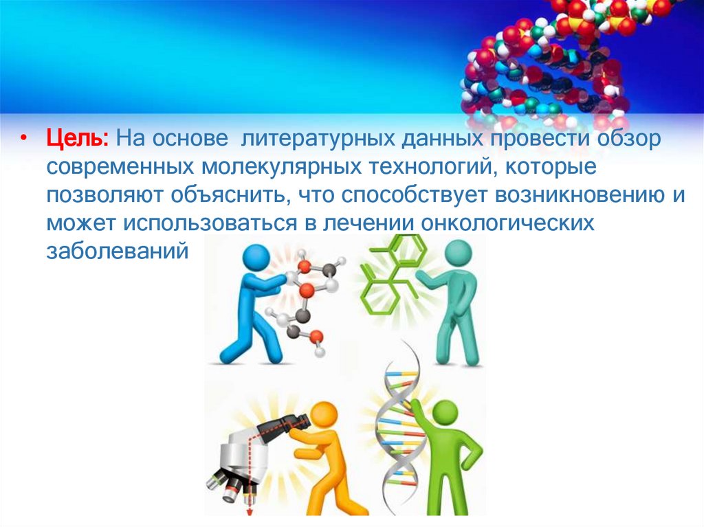 • Цель: На основе литературных данных провести обзорсовременных молекулярных технологий, которые