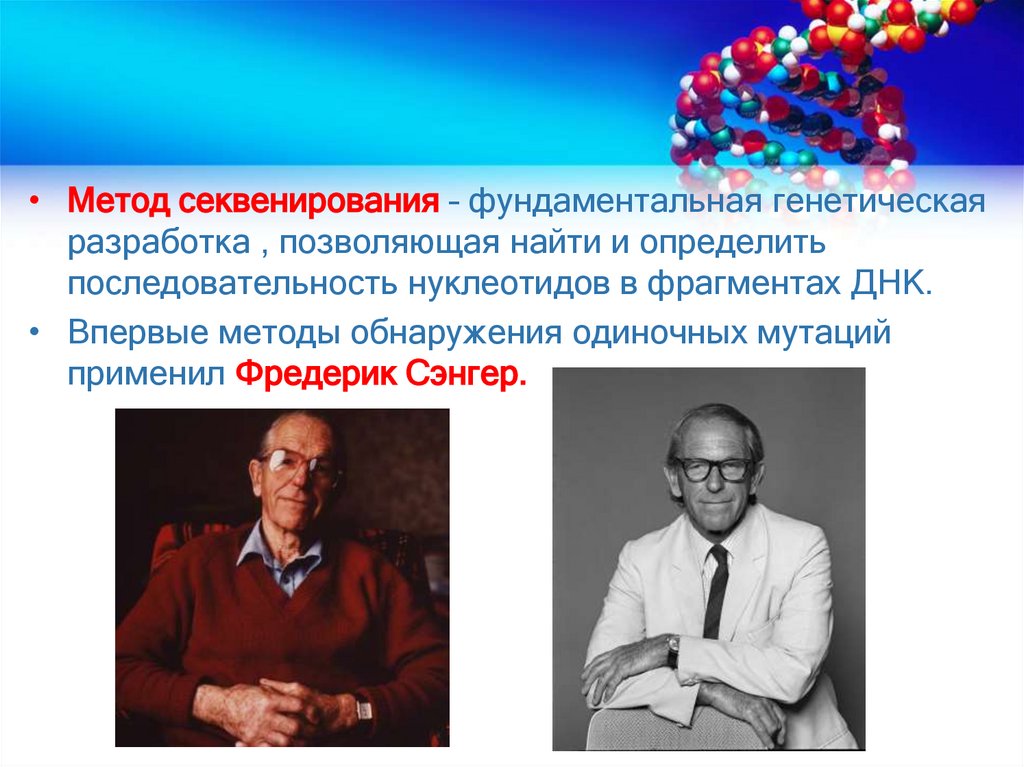 • Метод секвенирования – фундаментальная генетическаяразработка , позволяющая найти и определить