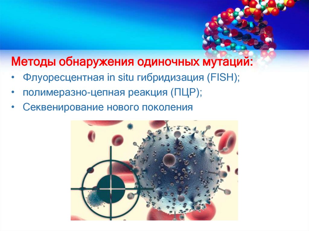 Методы обнаружения одиночных мутаций:• Флуоресцентная in situ гибридизация (FISH);