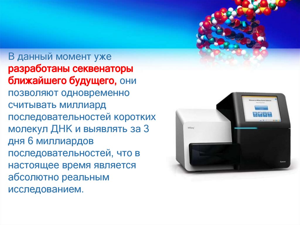 В данный момент ужеразработаны секвенаторы