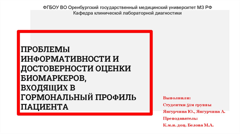 ФГБОУ ВО Оренбургский государственный медицинский университет МЗ РФКафедра клинической лабораторной диагностики