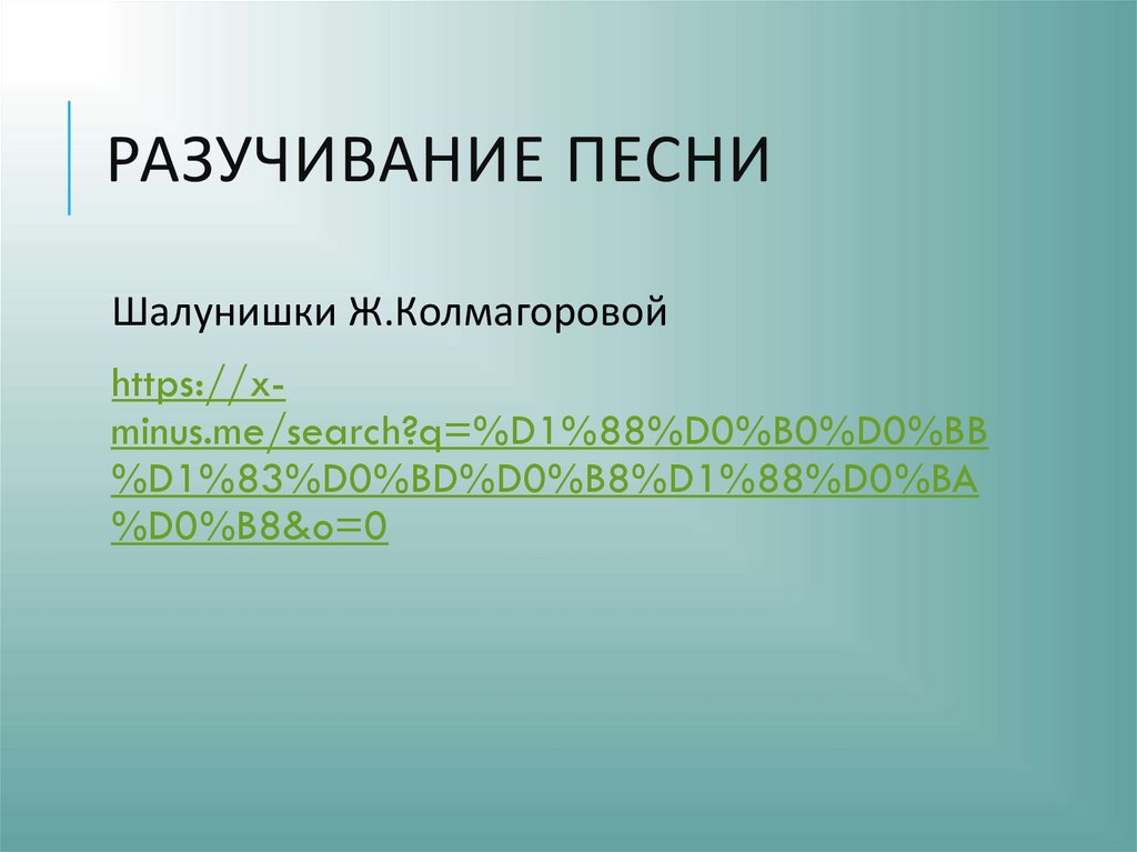 РАЗУЧИВАНИЕ ПЕСНИШалунишки Ж.Колмагоровой