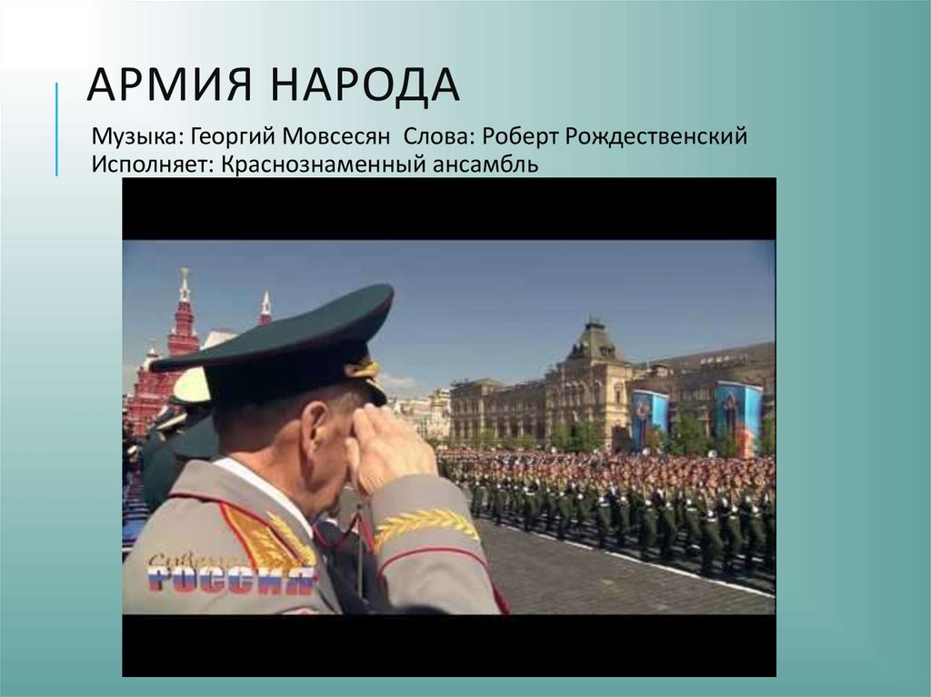 АРМИЯ НАРОДАMузыка: Георгий Мовсесян Слова: Роберт Рождественский