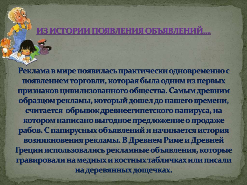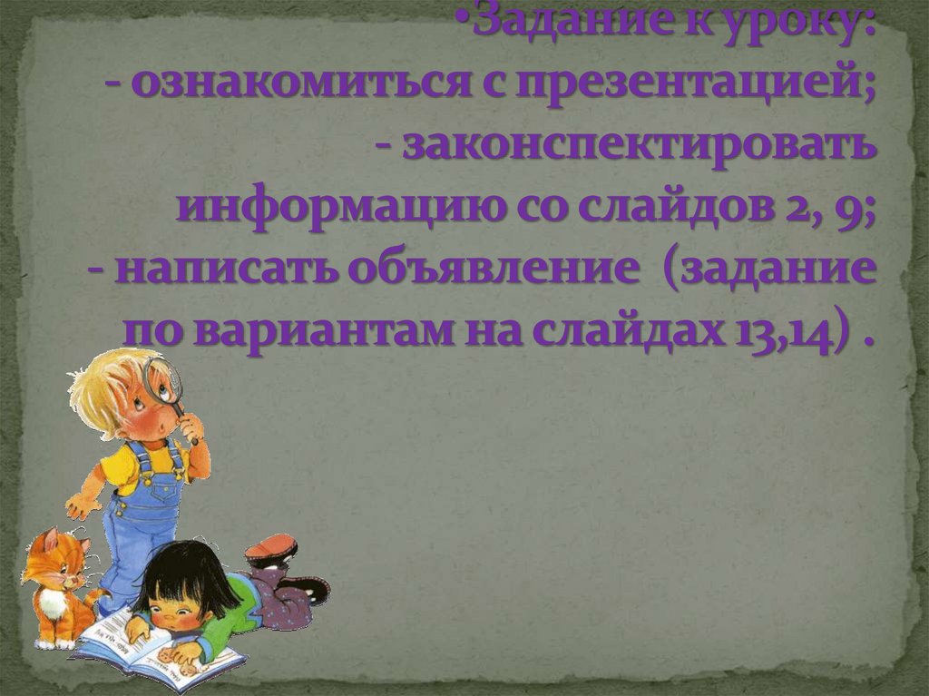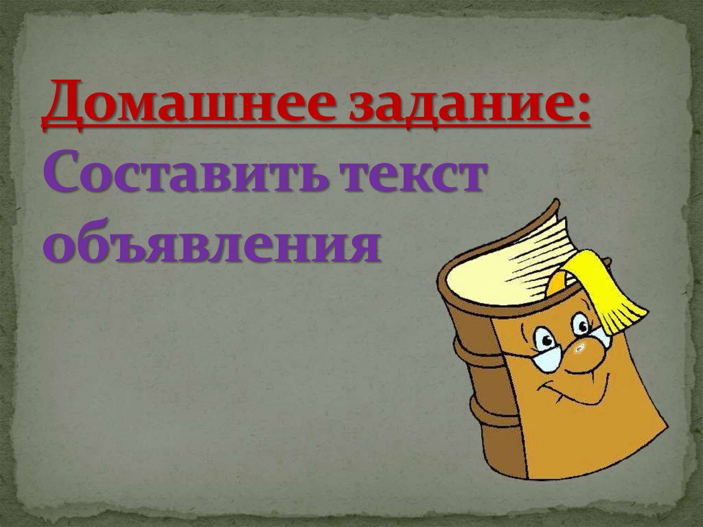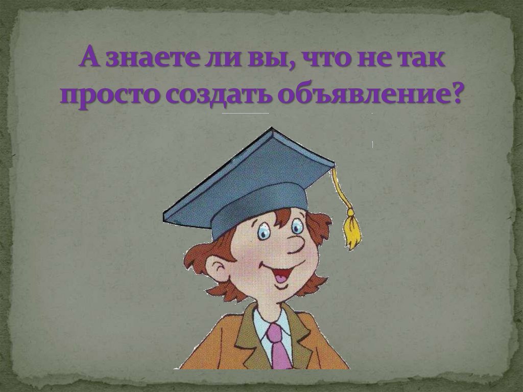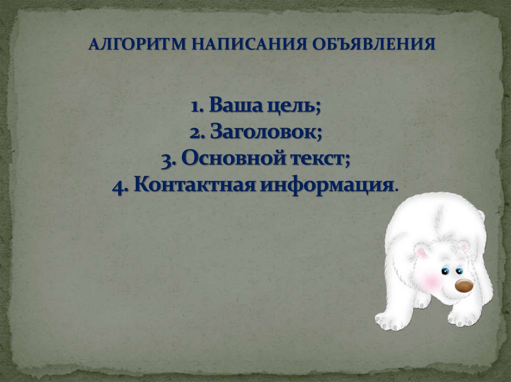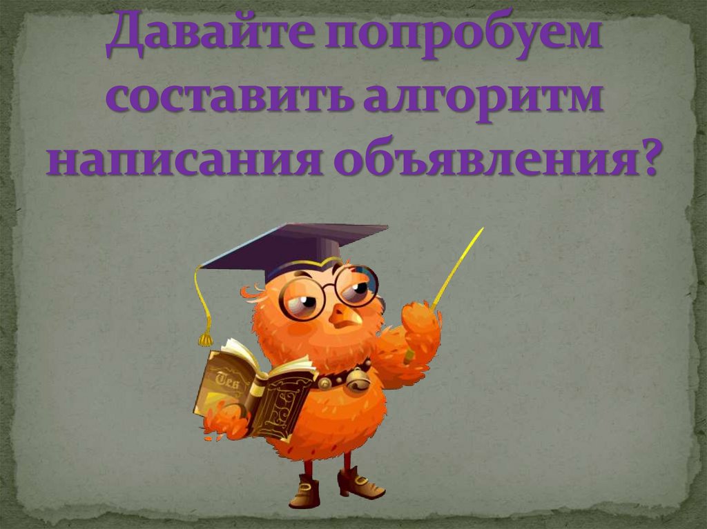 АЛГОРИТМ НАПИСАНИЯ ОБЪЯВЛЕНИЯ