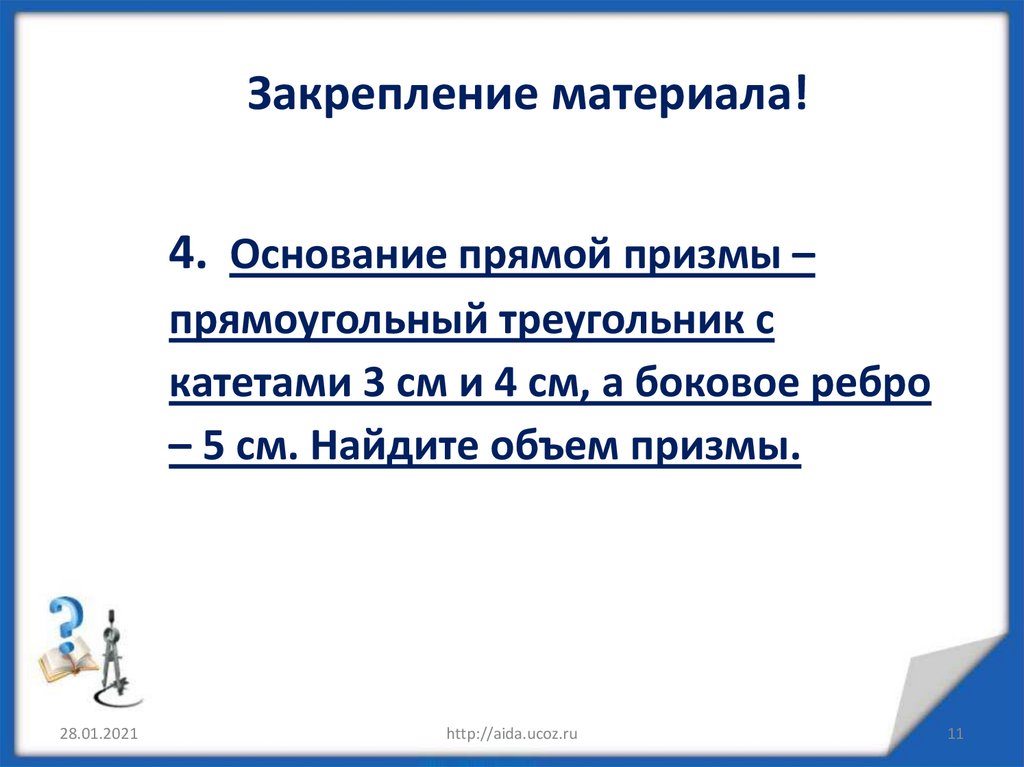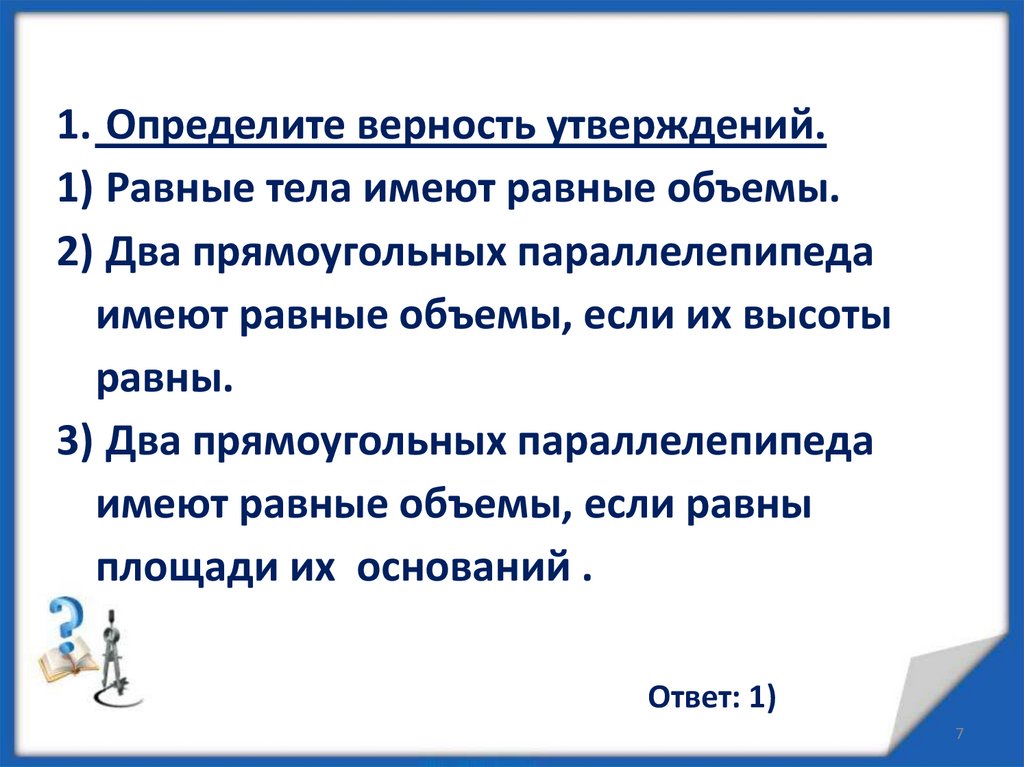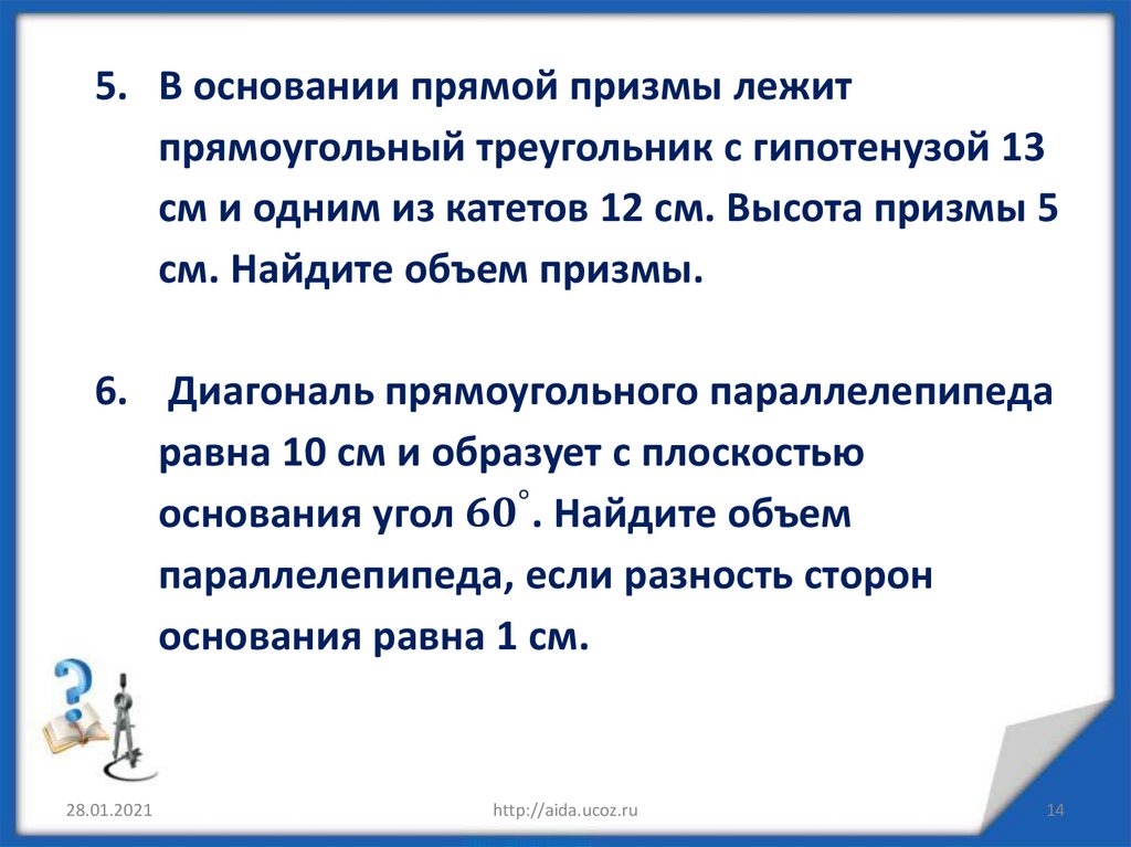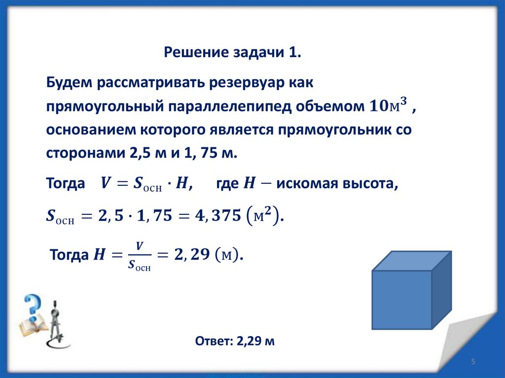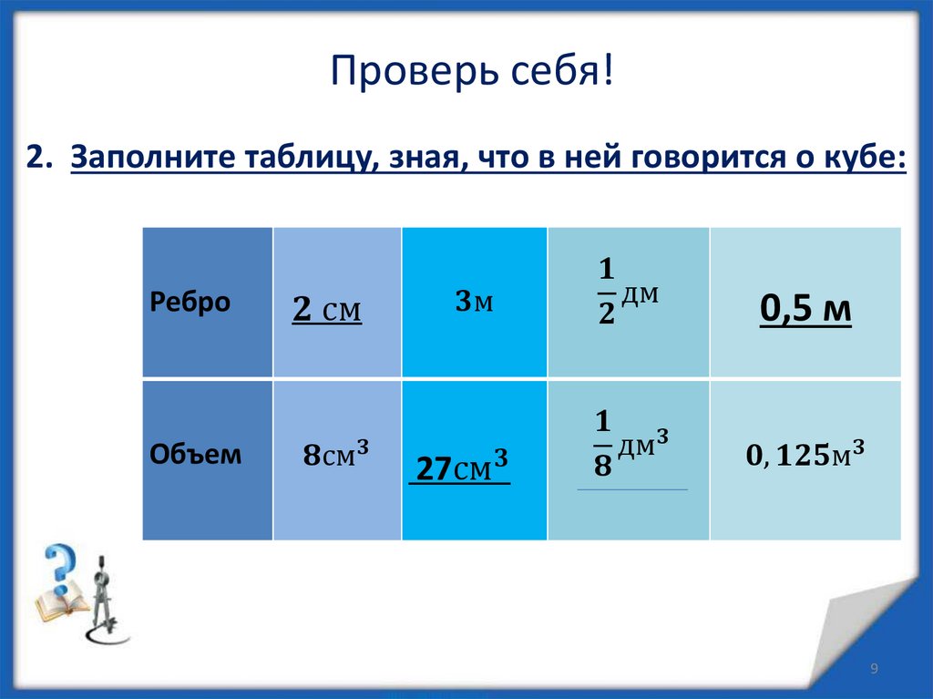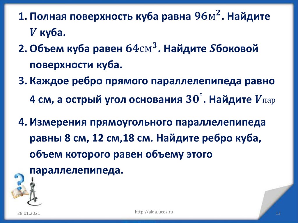Объем куба, прямоугольного параллелепипеда и призмы