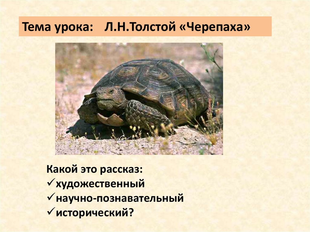 Тема урока: Л.Н.Толстой «Черепаха»Какой это рассказ:
