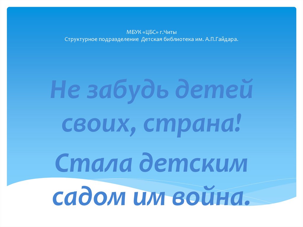 Структурное подразделение Детская библиотека им. А.П.Гайдара.