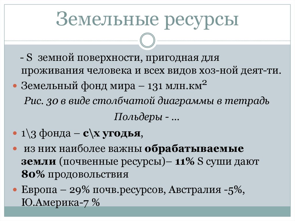 Европа – 29% почв.ресурсов, Австралия -5%,