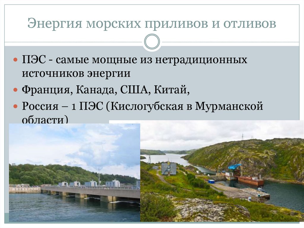 Энергия морских приливов и отливовПЭС - самые мощные из нетрадиционных