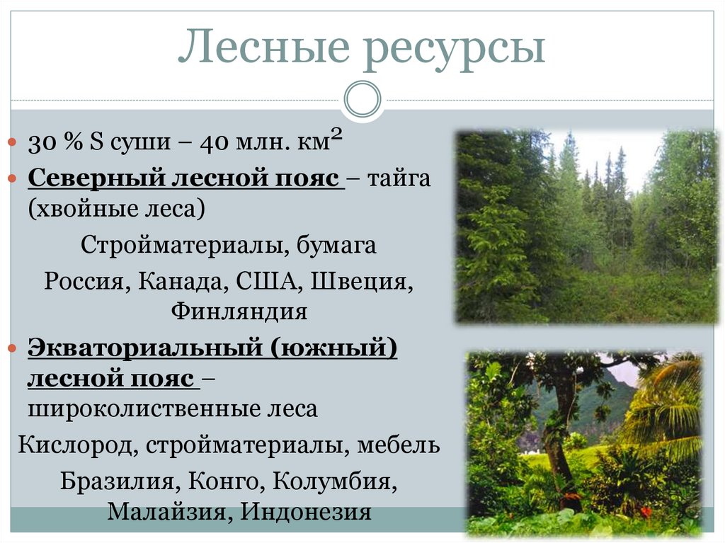 Лесные ресурсы30 % S суши – 40 млн. км2