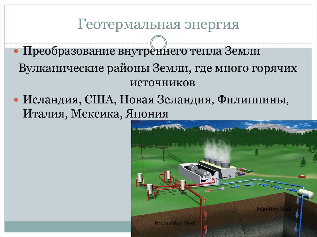Геотермальная энергияПреобразование внутреннего тепла Земли