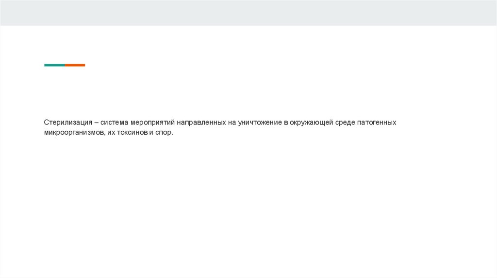 Стерилизация – система мероприятий направленных на уничтожение в окружающей среде патогенныхмикроорганизмов, их токсинов и спор.