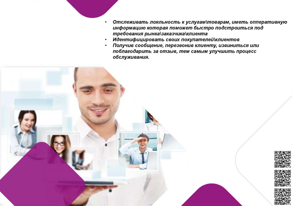 Отслеживать лояльность к услугам\товарам, иметь опперативную