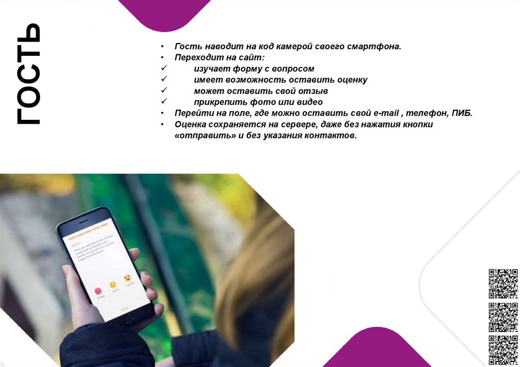 ГОСТЬГость наводит на код камерой своего смартфона.
