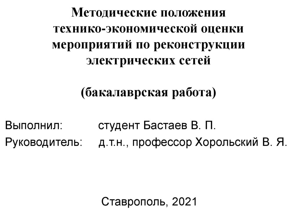 1. Методические положения технико-экономической оценки мероприятий по реконструкции электрических сетей (бакалаврская работа)