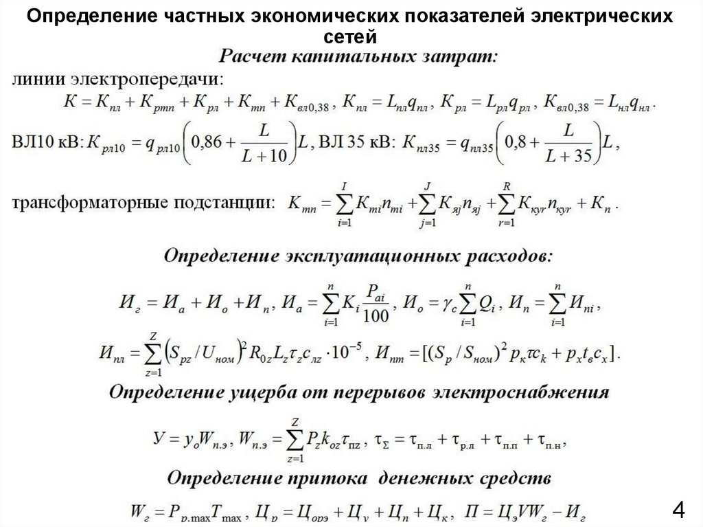 Определение частных экономических показателей электрическихсетей