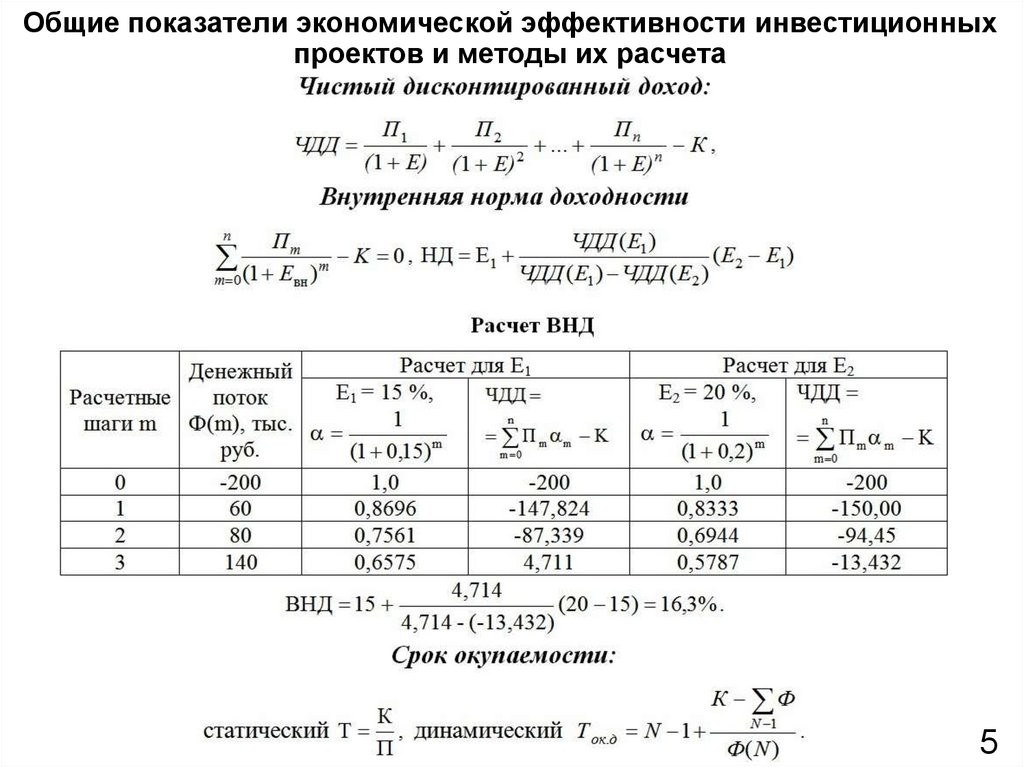 Общие показатели экономической эффективности инвестиционныхпроектов и методы их расчета