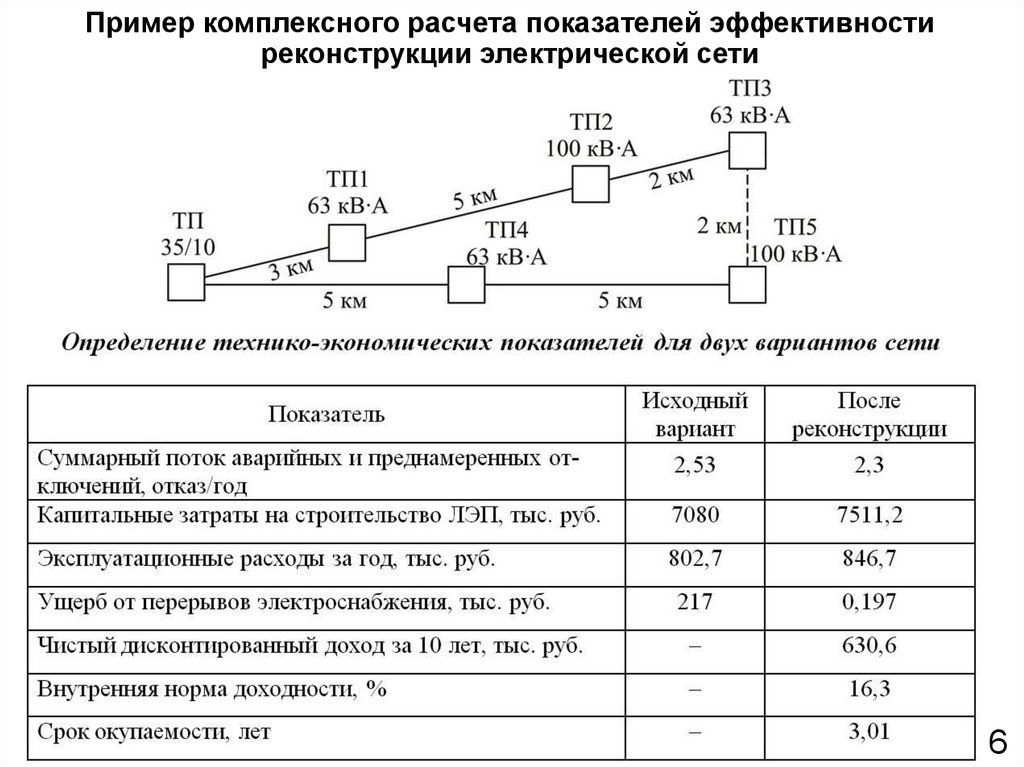 Пример комплексного расчета показателей эффективностиреконструкции электрической сети